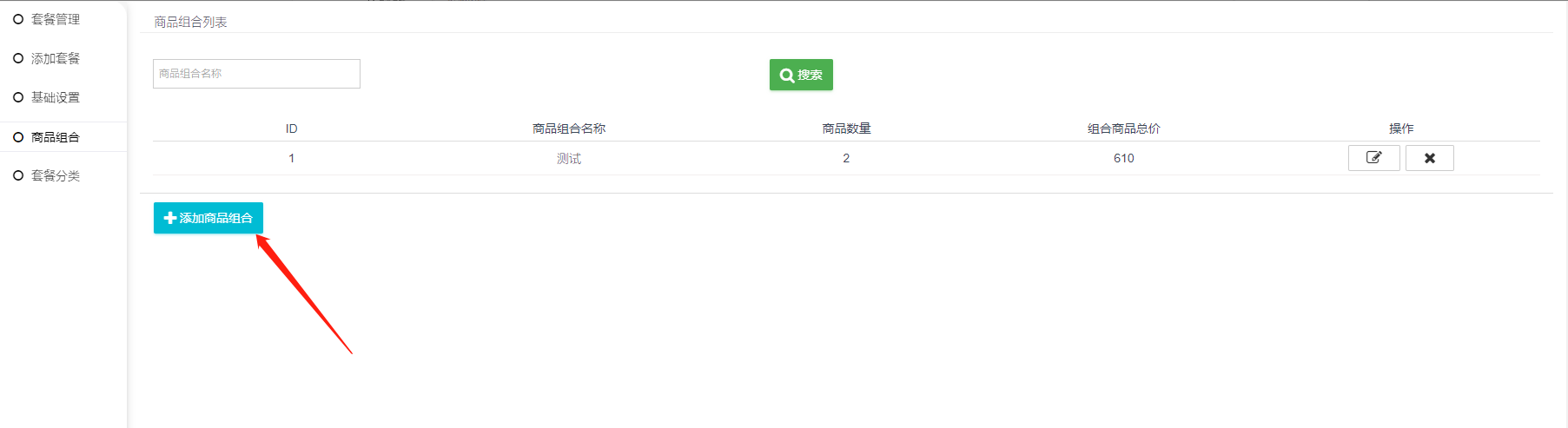 2、管理列表:套餐基本信息